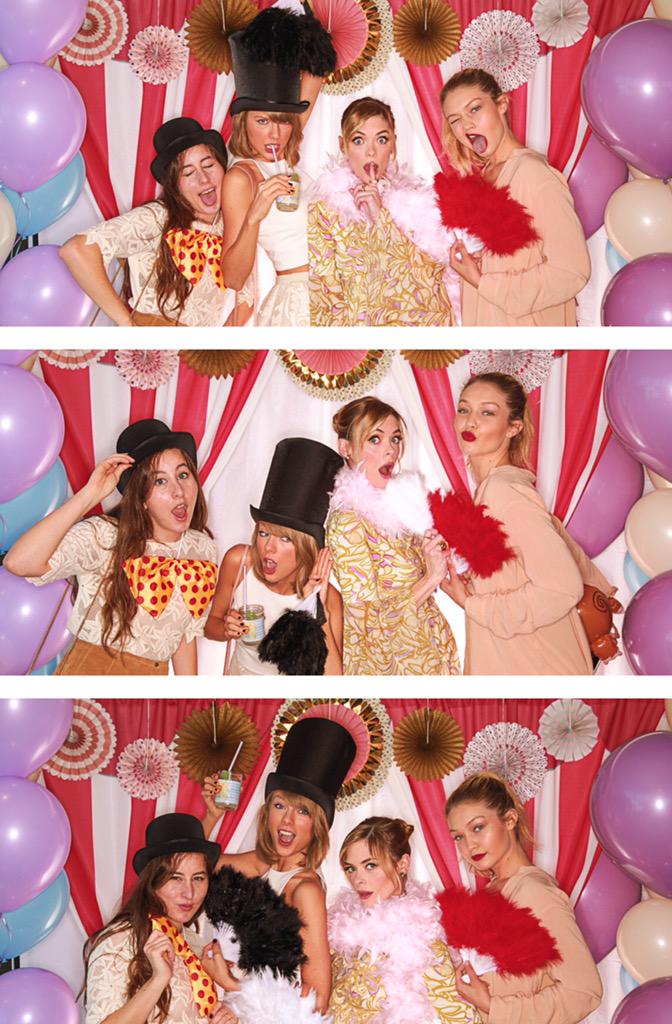 @taylorswift13 twitteó: So just took a red eye and threw Jaime a baby shower. Here's photo evidence: @Jaime_King @GiGiHadid @babyhaim